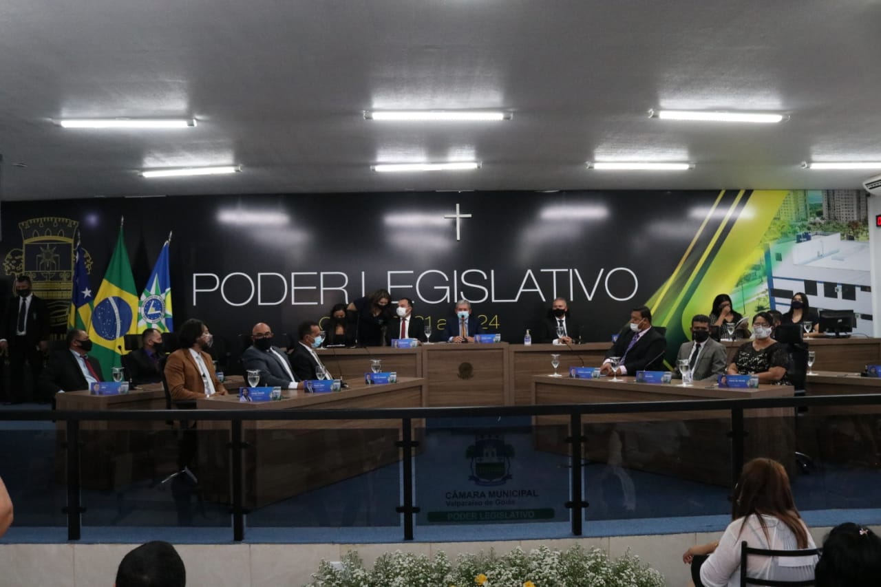 A Câmara Municipal de Valparaíso de Goiás, realizou nesta segunda-feira, 01 de fevereiro, a Sessão Especial de instalação da 7ª Legislatura, apresentação da Mesa Diretora e vereadores empossados, que atuarão na Casa de Leis de 2021 a 2024.
