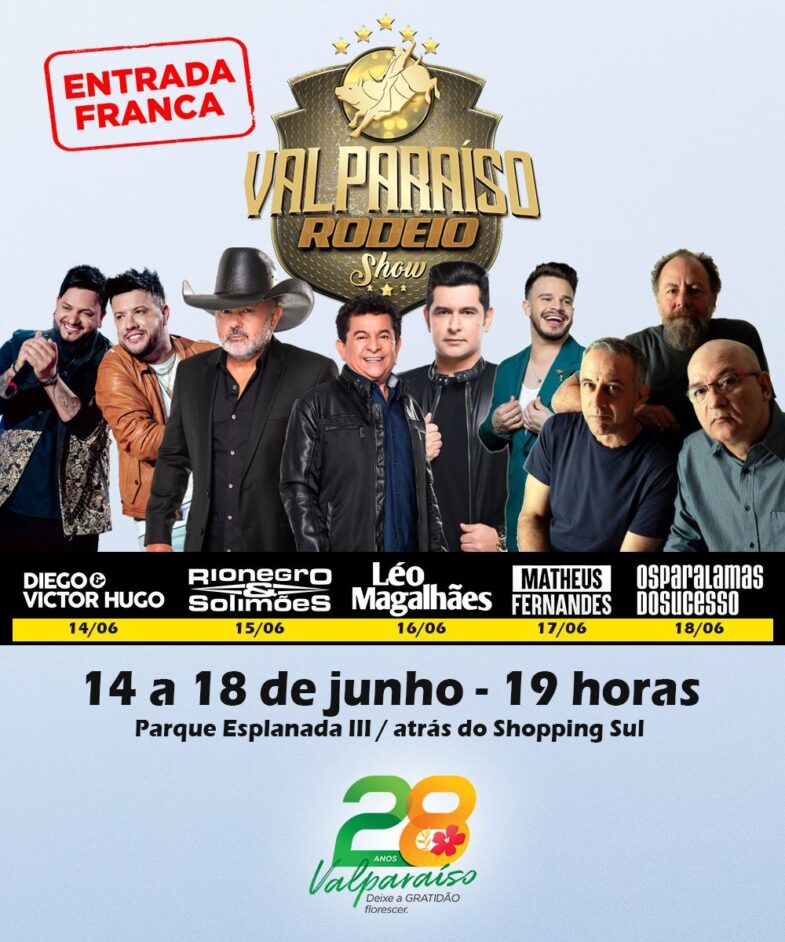 O Rodeio Show é promovido pelo Governo Municipal de Valparaíso de Goiás com a parceria da Câmara Municipal.