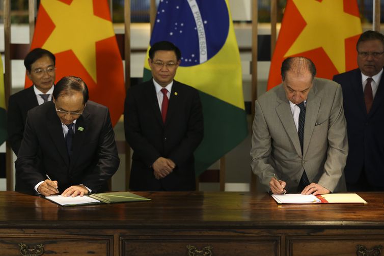 Após encontro com o presidente Michel Temer, no Palácio do Planalto, o vice-primeiro-ministro do Vietnã, Vuong Dinh Hue, assinou hoje (2), no Itamaraty, três acordos internacionais com o governo brasi...